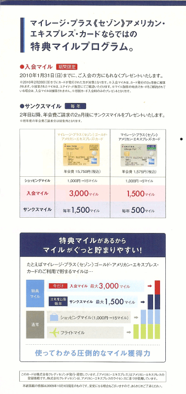 従来のVISA,マスターブランドのカードに加えて アメリカン・エキスプレスブランドの マイレージ・プラス《セゾン》アメリカン・エキスプレス・カード が登場しました. ユナイテッド航空マイレージプラス用には マイレージ・プラス《セゾン》マスター・カードを利用しているのですが アメックスブランドのカードは現有していないので マスターからアメックスへの変更を検討しています. 同じだけの年会費を支払っても VISAやマスター提携カードとは異なり アメックスブランドだと継続でもマイルが貯まるというのも かなりのメリットになるのではないかと感じています. とりあえずは資料請求だけでもしてみようと思います. 券面もそんなに悪くはないと思うんですけど.... ブログランキングに登録しましたので プチッとクリック↓してやってくださいませm(_ _)m |