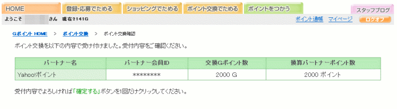 500ポイント分をGポイントにポイント交換申請しました. リアルタイムポイント交換なので,すぐにでポイント移行を確認できました. ブログランキングに登録しましたので プチッとクリック↓してやってくださいませm(_ _)m |