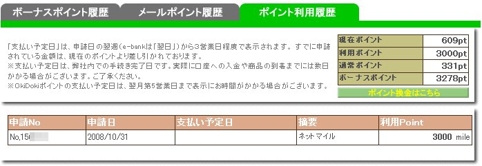 「特典交換1.5倍!増量フェア」の参加に必要な3000マイルを HESO-CLICKからのポイント移行で達成しました. マイル残高は5000マイルを超えました. この「特典交換1.5倍!増量フェア」でポイント移行が1.5倍になるのは 最大で5000マイルまでなので これを上回る分はキャンペーンに合わせてキープしておく必要がありません. 見込みマイルを含めると6000マイルを超えるので 近々1000マイルはYahoo!ポイントにポイント移行する予定です. 通常期では 1000ネットマイル→500Yahoo!ポイント になります. ブログランキングに登録しましたので プチッとクリック↓してやってくださいませm(_ _)m |