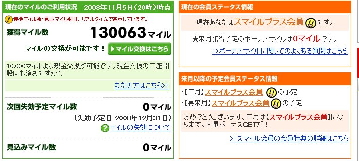 残念ながら?インターネット上で 国内最大規模のポイントサイト『ライフマイル』 あと221マイルで13万マイルを超えるので これを超えたらポイント移行手続をしようと思います. 13万ライフマイルというのはYahoo!ポイントを経由して JMBマイレージに交換すると... 13万ライフマイル→1万3千Yahoo!ポイント→6500JMBマイレージ となります.それなりのマイレージ数になりますよね. 『ライフマイル』 かなりお勧めのポイントサイトだと思いますよ.お勧めです! ◆簡単会員登録で豪華賞品GET♪ライフマイルへの会員登録は今がチャンス!◆ ブログランキングに登録しましたので プチッとクリック↓してやってくださいませm(_ _)m |