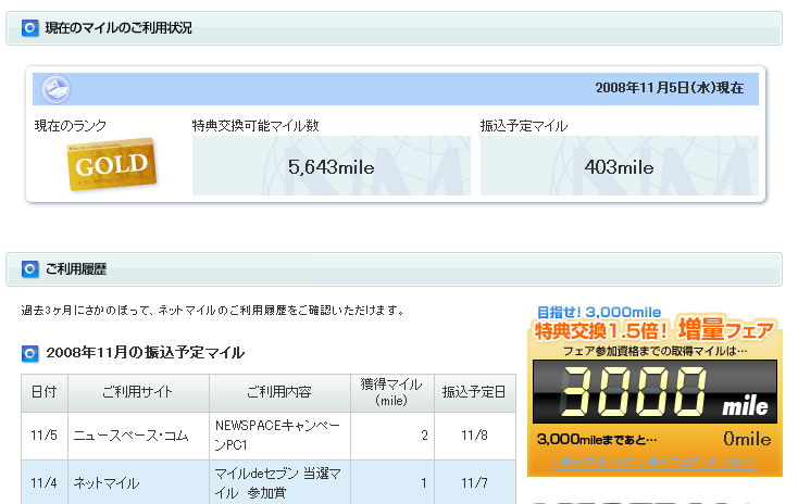 現在ネットマイル