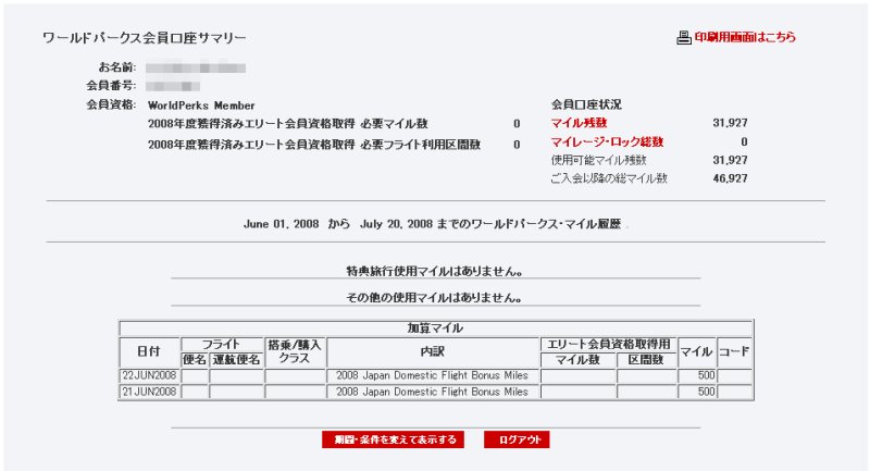 終了が近づいてきました. まだ,未登録の方は,この機会に登録してみては如何でしょうか? My フライトメール登録ボーナスマイル キャンペーンの詳細は以下の通りです. 旅行の際に必要なフライト情報をEメールでお受け取りいただけるMy フライトメールの登録はお済みですか?まだご登録でない方は、ぜひ今すぐ、オンラインでご登録ください。2008年7月31日までの期間中にご登録いただき、6ヵ月以上ご登録をご継続いただいたすべての方は、1,000ワールドパークス®・ボーナスマイルをご獲得いただけます! My フライトメールは、ご予約の確認や会員口座サマリーなどの情報をオンラインで管理できる「My ノースウエスト(旧My NWA Info)」の中のフライト情報通知サービスです。My フライトメールにご登録いただきますと、ノースウエスト航空®でご旅行をされる度に、NWA オンライン・チェックイン開始時間やフライトの出発、到着情報など、ご希望のフライト情報を、ご指定のEメールアドレスでお受け取りいただけます。 お受け取りになる情報に応じて、ご自身はもちろん、ご家族やご友人のEメールアドレス、携帯電話のアドレスなど、それぞれ最大3つのEメールアドレスをご登録いただけます。この機会にぜひ、My フライトメールにご登録いただき、次回のご旅行やご出張をよりスマートにお楽しみください。 キャンペーン詳細はこちらをご覧ください. 人気blogランキングに登録しましたので プチッとクリック↓してやってくださいませm(_ _)m |
