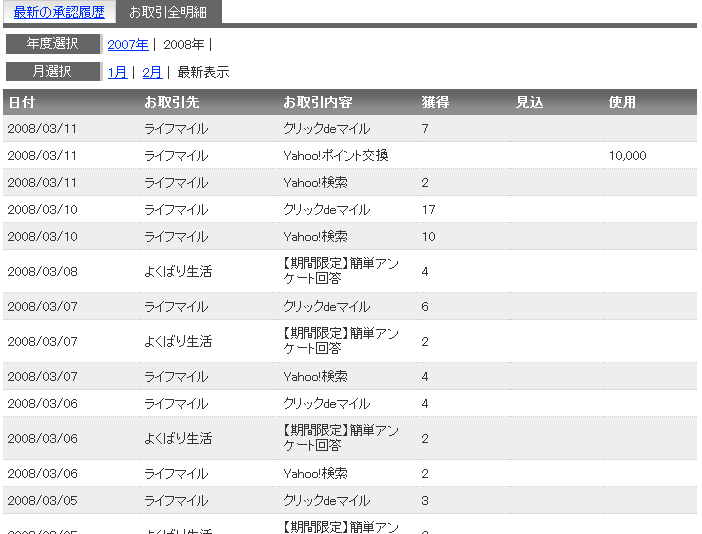 Yahoo!ポイントに交換する手続きをしました. 交換レートは1:1なので1ライフマイルポイントで1Yahoo!ポイントになります. 今回は1000ポイントの交換をしました. Yahoo!ポイントに交換された後は,JALマイレージに交換する予定です. Yahoo!ポイントからJALマイレージへの交換は,少ないポイントからもできるので便利です. Yahoo!ポイントからJALマイレージへの交換レートは2:1なので 結果的に ライフマイル1000ポイントは500JALマイレージに交換されることになります. 人気blogランキングに登録しましたので プチッとクリック↓してやってくださいませm(_ _)m |